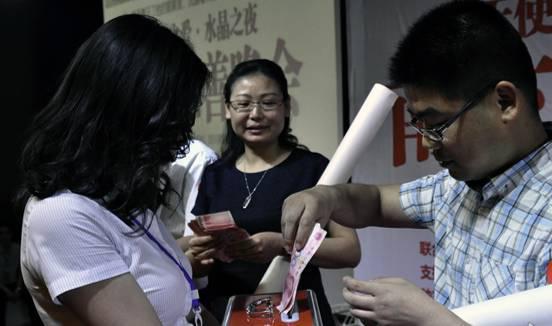 競拍結(jié)束后,在場的所有參會者也紛紛涌向了募捐箱,一百、兩